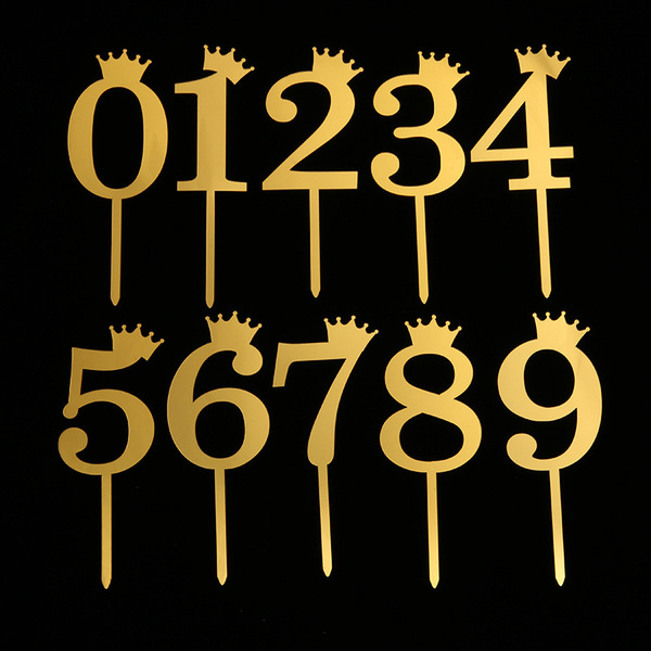 - 10 gold acrylic numbers (0-9) cake topper, each number is topped with a golden crown, and any number can be assembled at will.