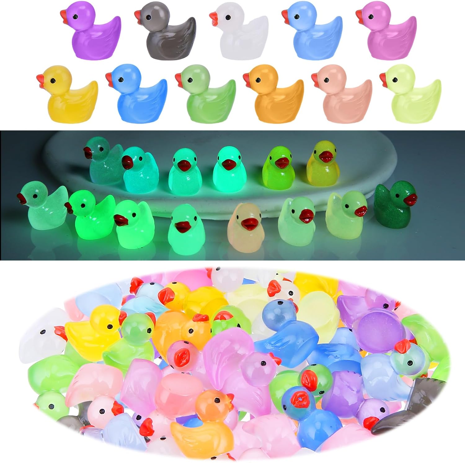 Cute Little Duck Set】The package contains 50 pcs mini luminescent ducks, with about 12 colors, these glitter duck ornaments look so realistic and cute, the quantity is enough to meet your diverse needs, will bring different charm to your creations Visual experience.
