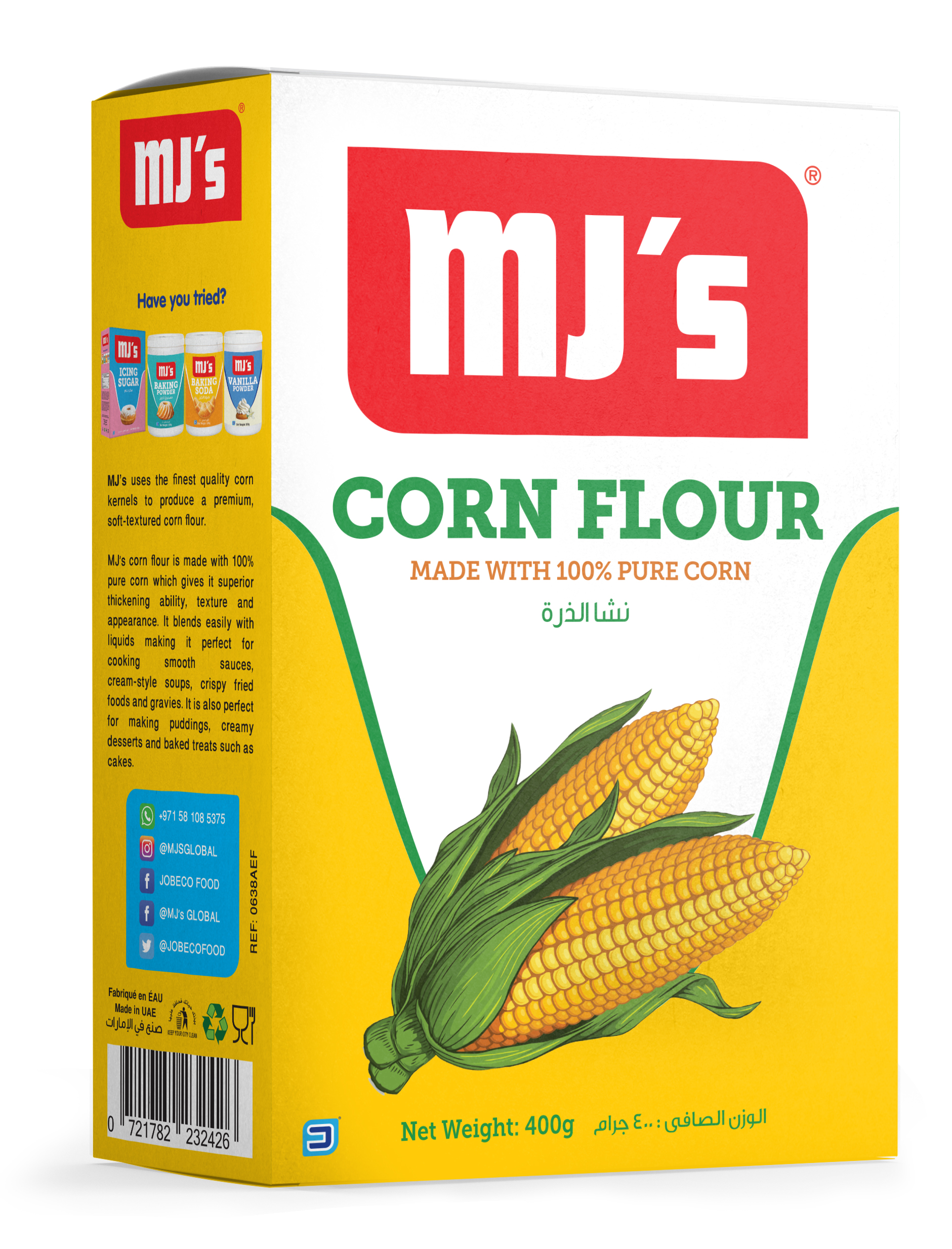 “MJ’s Corn Flour 400g” refers to a 400-gram package of corn flour produced by the brand “MJ’s.” Corn flour, also known as maize flour or cornmeal, is a fine powder made by grinding dried corn kernels. It is commonly used as a thickening agent in recipes such as soups, stews, sauces, and gravies. Additionally, corn flour is a key ingredient in various baked goods, including cornbread, muffins, and pancakes. With its versatility and ability to add texture and flavor to dishes, MJ’s Corn Flour is a pantry staple for both cooking enthusiasts and professional chefs alike.